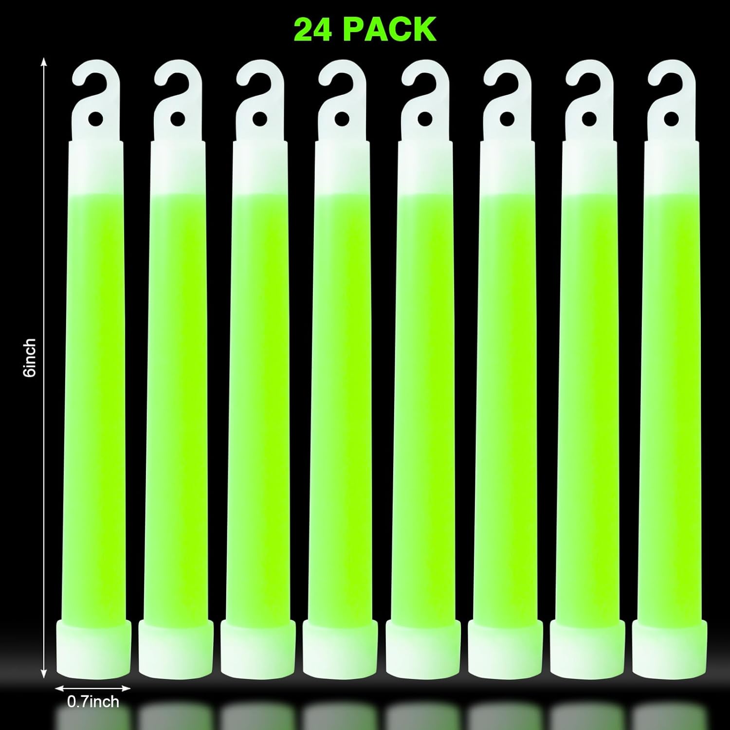 24 Pack Bright Glow Sticks Emergency Green Glow Sticks with 12 Hour Duration Chem Lights Sticks for Camping, Lights Parties, Emergency Light, Survival Kit, Blackout, Kids Activities