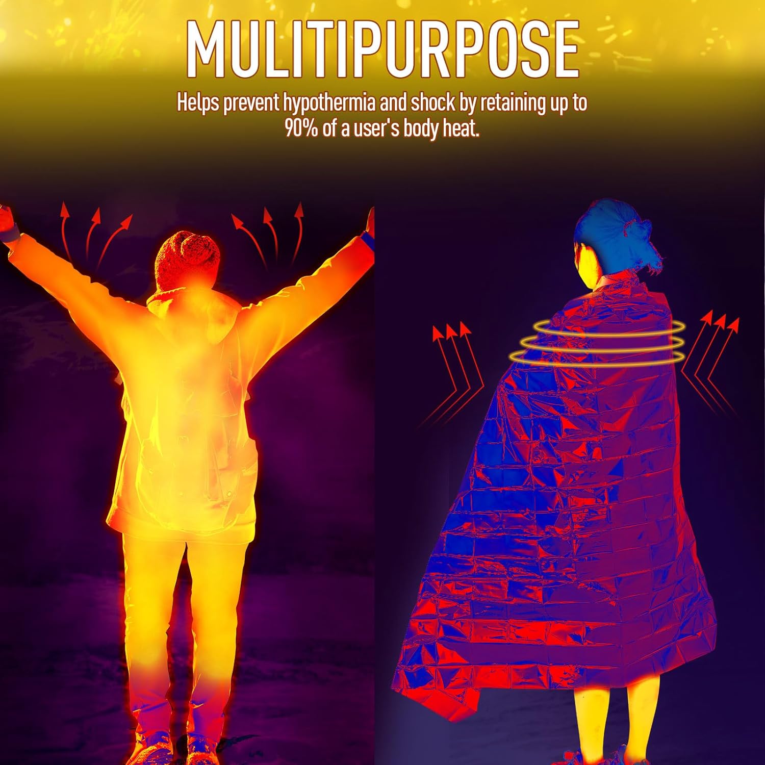 While this thermal blanket is primarily intended for emergency situations, its versatility extends to various outdoor activities and emergency preparedness. You can use it as a bivouac sack, backpack cover, rain poncho, shade cover, arm sling, wind blocker, and many more applications. Its multipurpose design makes it an essential tool for a wide range of situations.