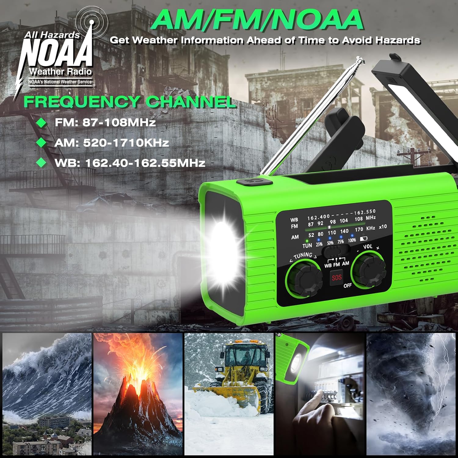- Hand Crank: Generate power manually, ensuring you remain informed and ready even when other power sources fail.