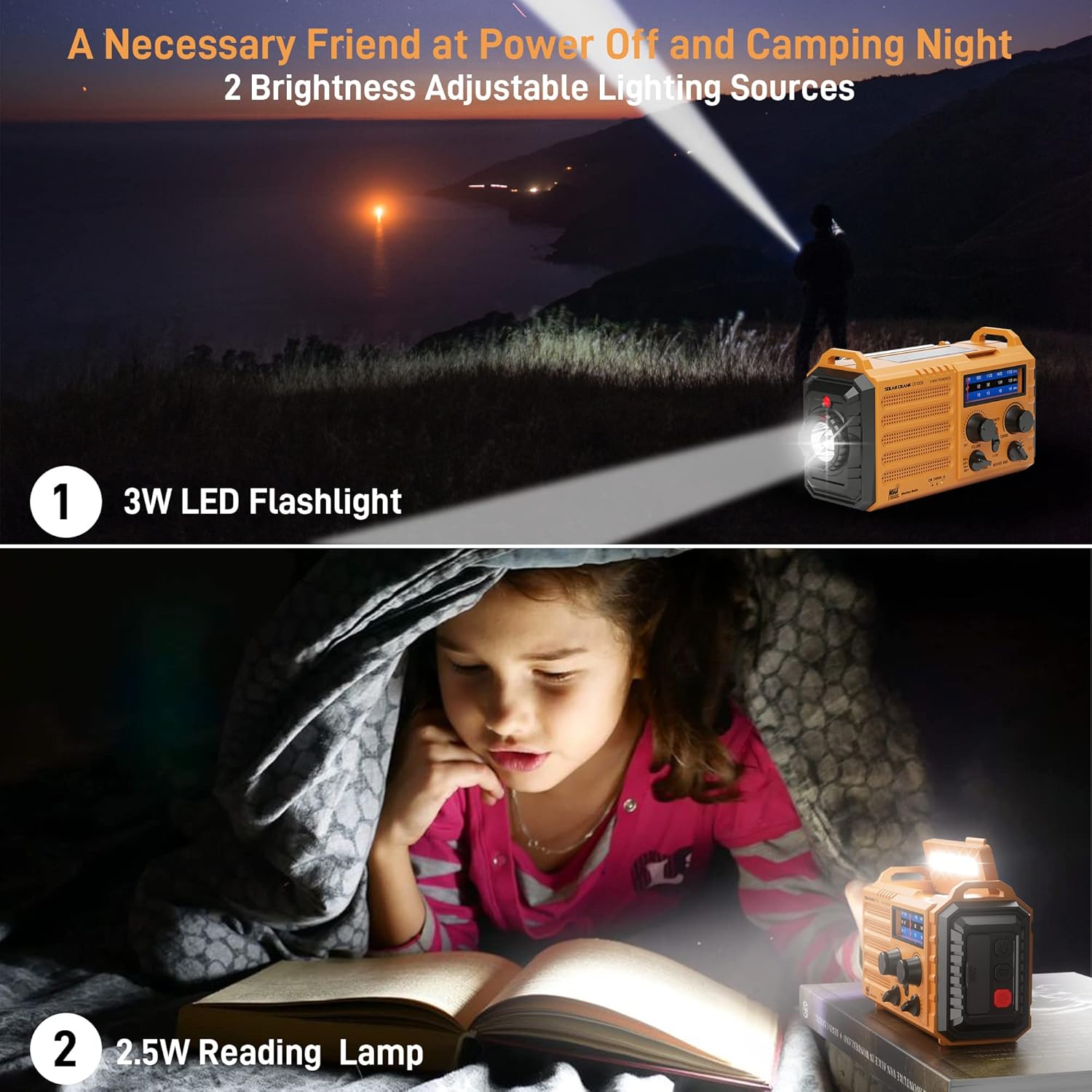 Emergency Radio with NOAA Weather Alert, Portable Solar Hand Crank AM/FM Radio for Survival, Rechargeable Battery Powered, USB Charger, Flashlight, Reading Lamp, SOS Alarm for Home Outdoor Emergencies